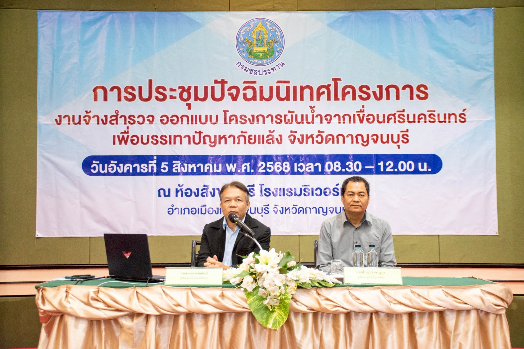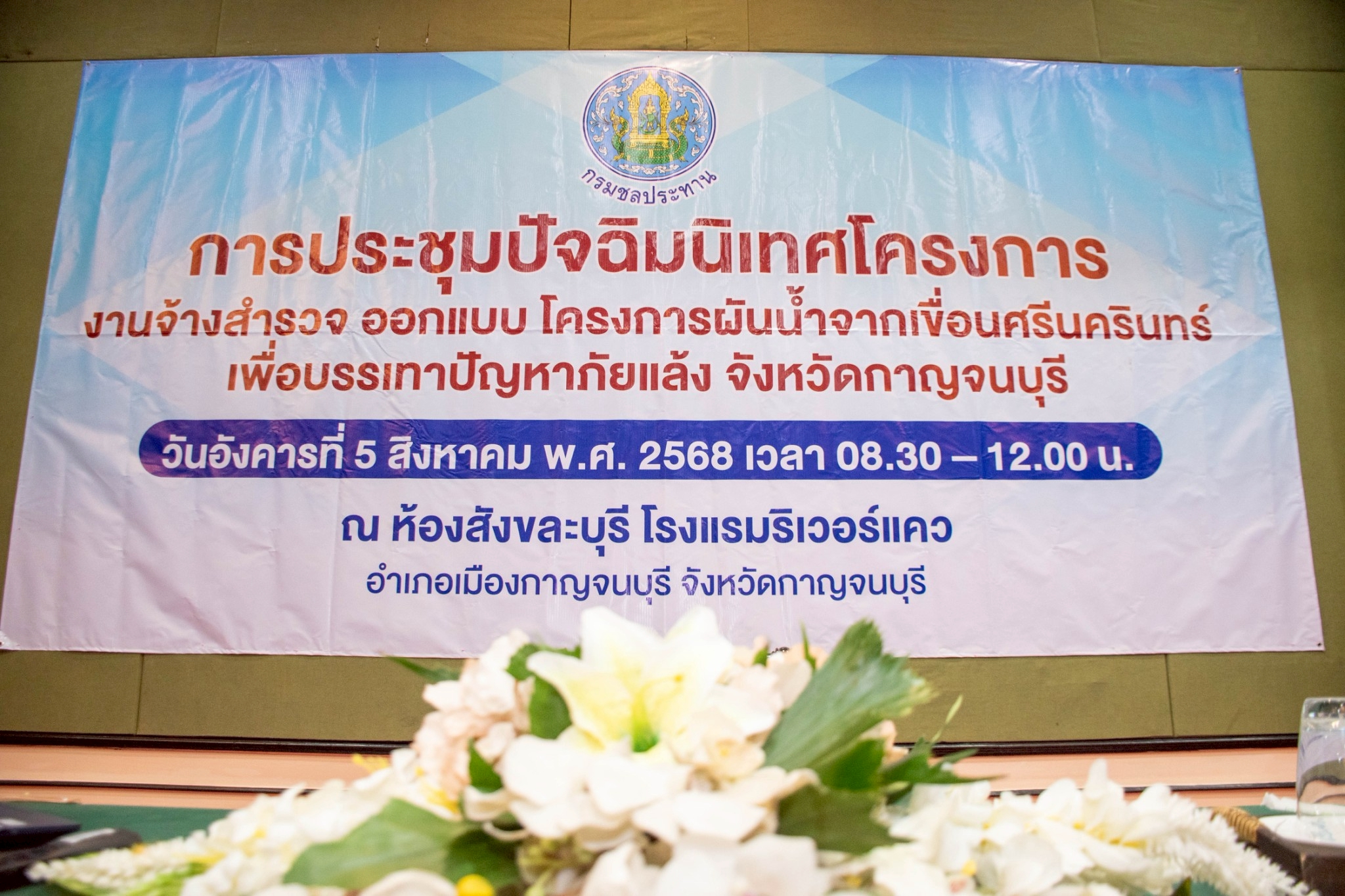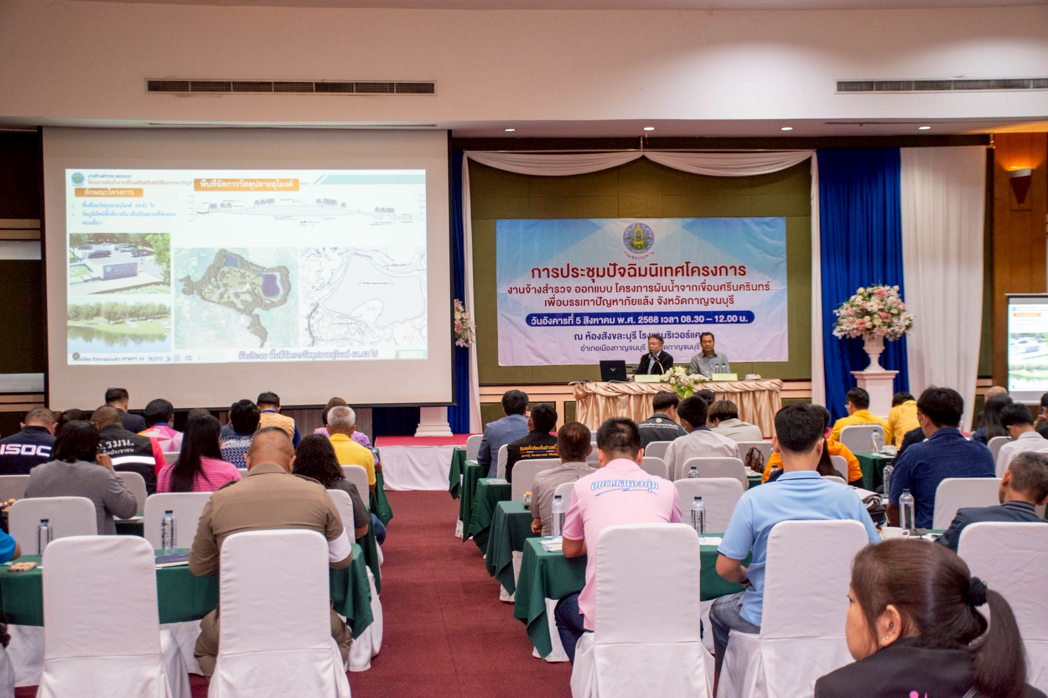 กรมชลประทาน ร่วมกับ กิจการร่วมค้า PFWFT JV ได้จัดให้มีการปัจฉิมนิเทศโครงการ งานจ้างสำรวจ ออกแบบ โครงการผันน้ำจากเขื่อนศรีนครินทร์เพื่อบรรเทาปัญหาภัยแล้ง จังหวัดกาญจนบุรี